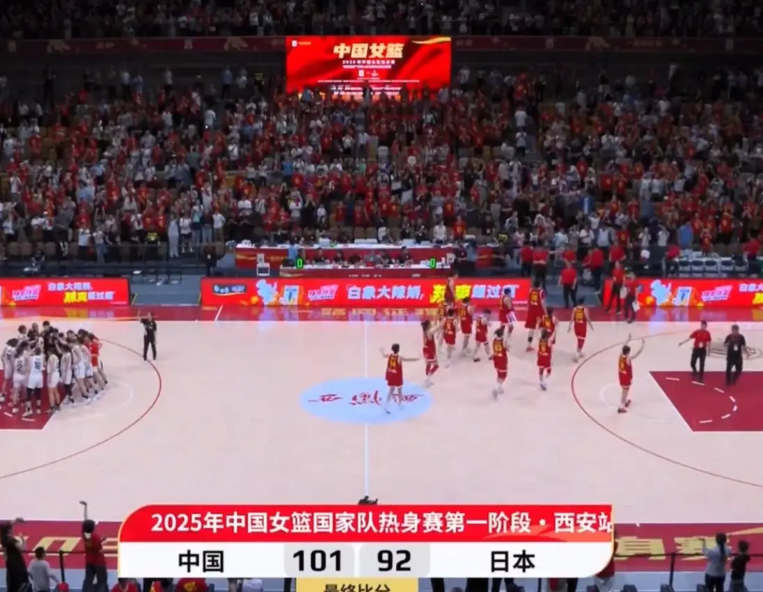 女篮热身赛,中国女篮以9分的优势战胜了日本女篮,拿到了本场比赛的胜利。